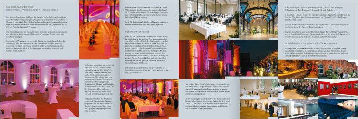 Logo und Imagefolder Conference & Art Conference & Art GbR Entwicklung des Logos und eines Imagefolders für den Veranstaltungsort im historischen Südflügel des Kulturbahnhofs Kassel. Realisiert auf einem zum Ambiente des Orts passenden ungestrichenen, wertigen Recyclingpapier. |