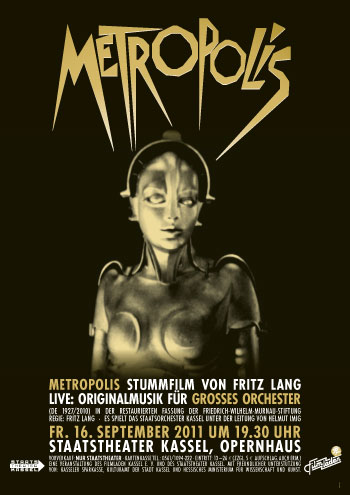 Plakat Metropolis Filmladen Kassel e.V. Layout und Realisierung von Plakaten verschiedener Formate (A1 und Litfasssäulen) für die Aufführung der restaurierten Fassung mit Orchester-Live-Begleitung im Staatstheater Kassel |